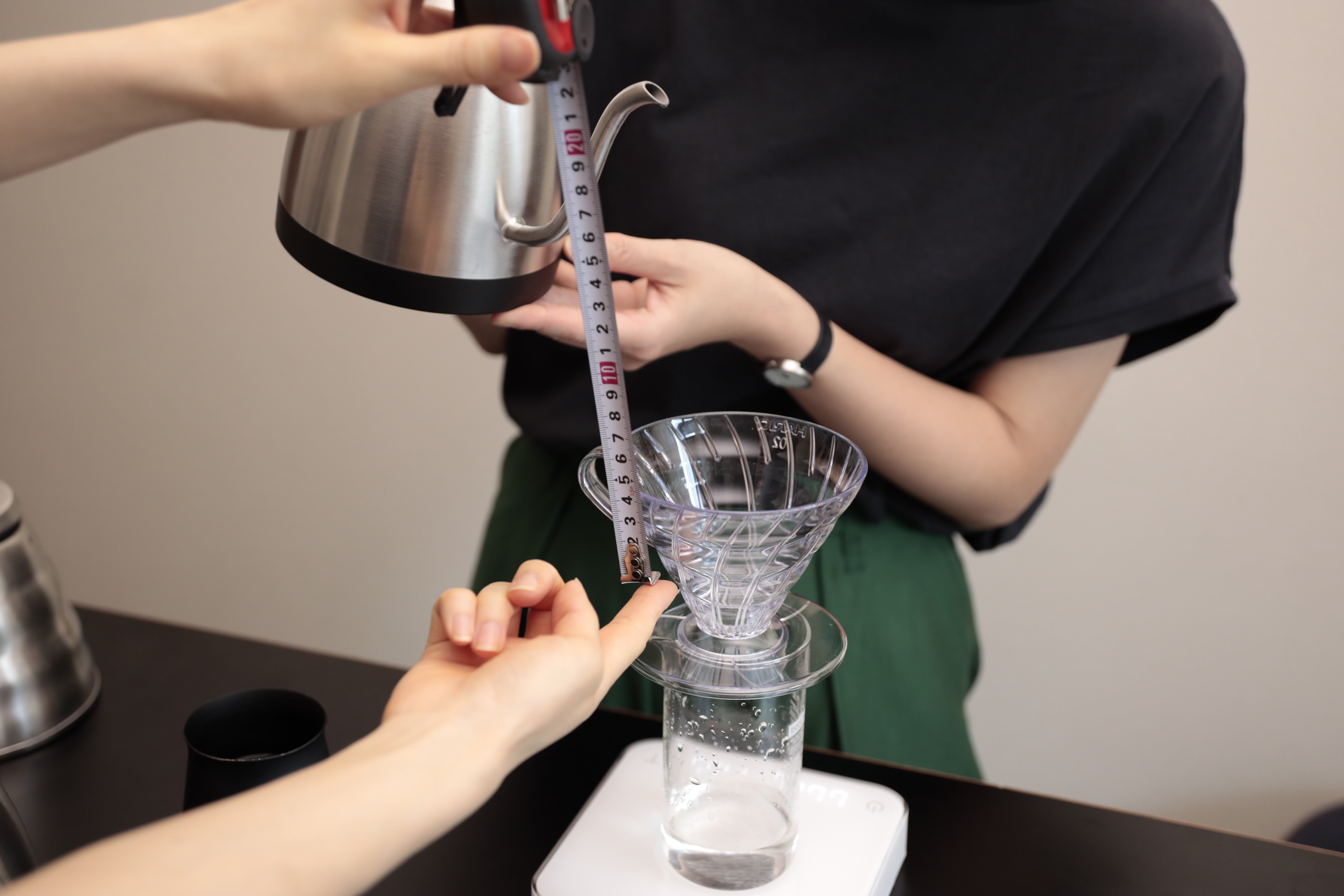 今回の検証では、10cmがスイートスポットに最も近いという結論になりましたが、検証中は高さと注湯速度6.5/秒という条件をぶらさないようドリップをするのがとても大変でした。各々の条件で最適な距離を見出せた後も、抽出ごとにその部分がブレないようにトレーニングをする必要があると言えるでしょう。