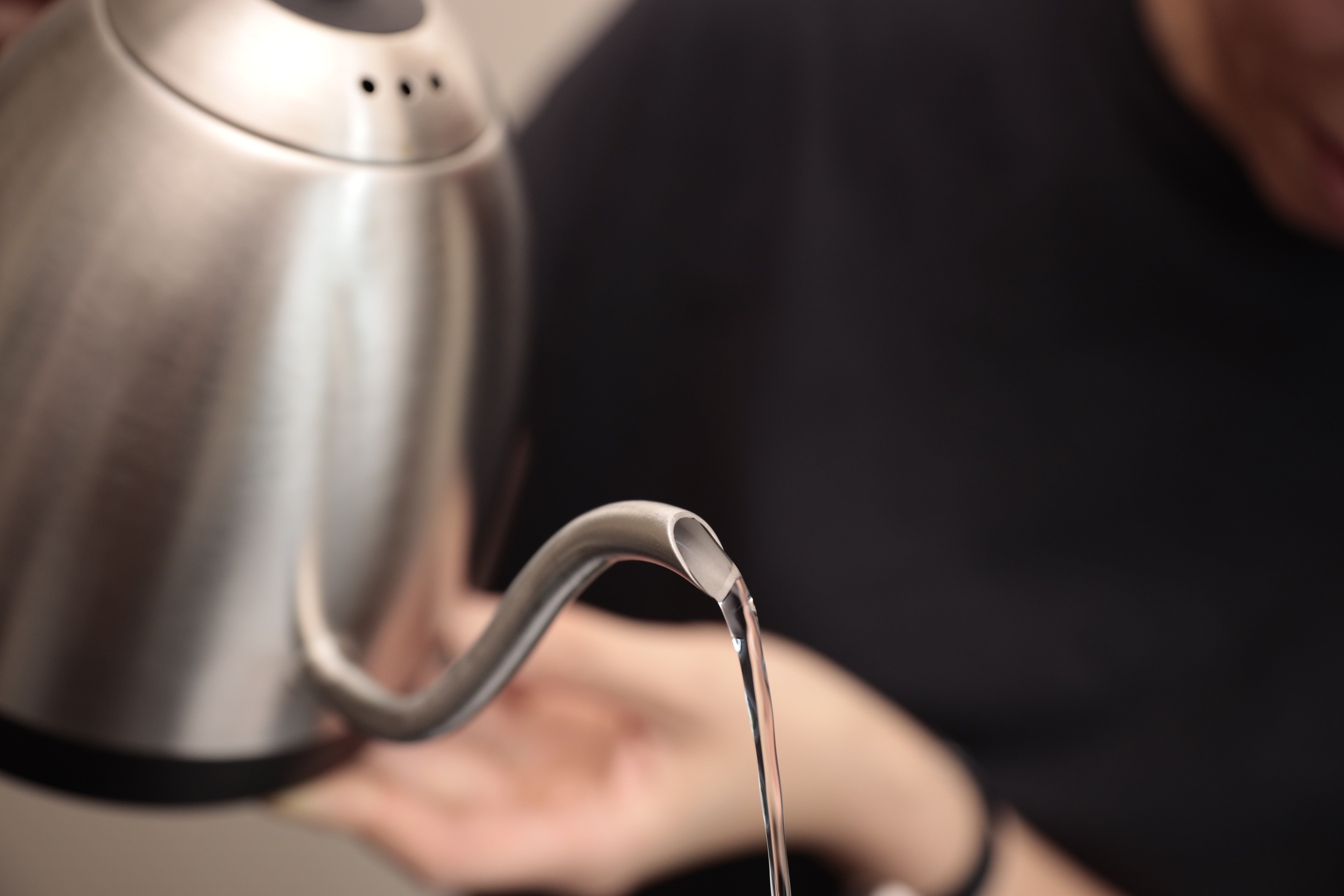 ケトルのグースネックの幅、先端の滑らかさ、流れの垂直性、ケトルを周す動きの速さのすべてが水流の特性とスラリーとの相互作用を変化させます。